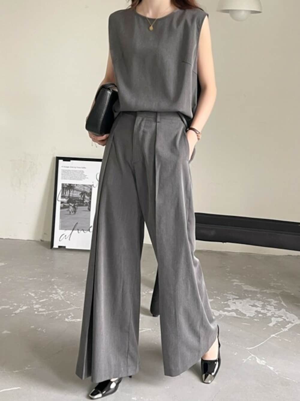 ABITOKYOのセットアップ「センタープレスワイドパンツセットアップ」を使ったコーディネート