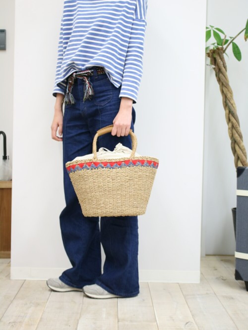 ACCOMMODEのかごバッグ「クスコトートバッグ」を使ったコーディネート