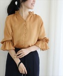 ADAM ET ROPE' STAFFのシャツ/ブラウス「袖ボリュームフリルカラーブラウス」を使ったコーディネート