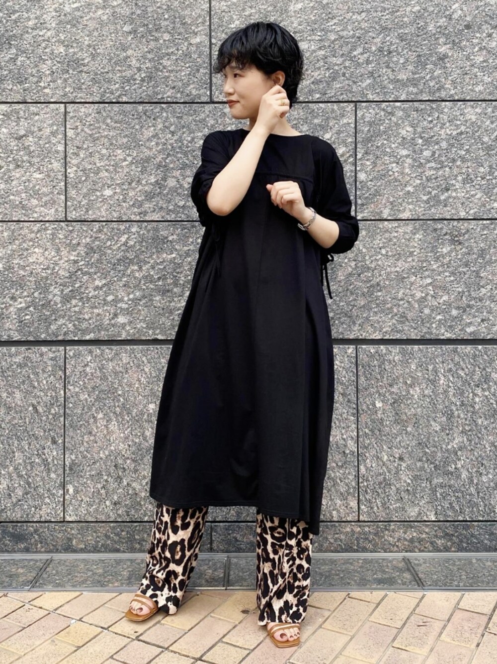 ゆったりとしたシルエットと、紐の調節でアレンジできるデザインが魅力のワンピースです。 1枚でも素敵なのですが、柄のあるパンツと合わせると、一気にコーディネートが華やかになっておすすめです◎ STAFF:160cm