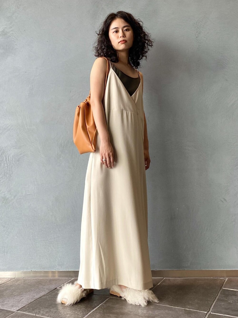 ADAM ET ROPE' STAFFのワンピース「カシュクールキャミワンピース」を使ったコーディネート
