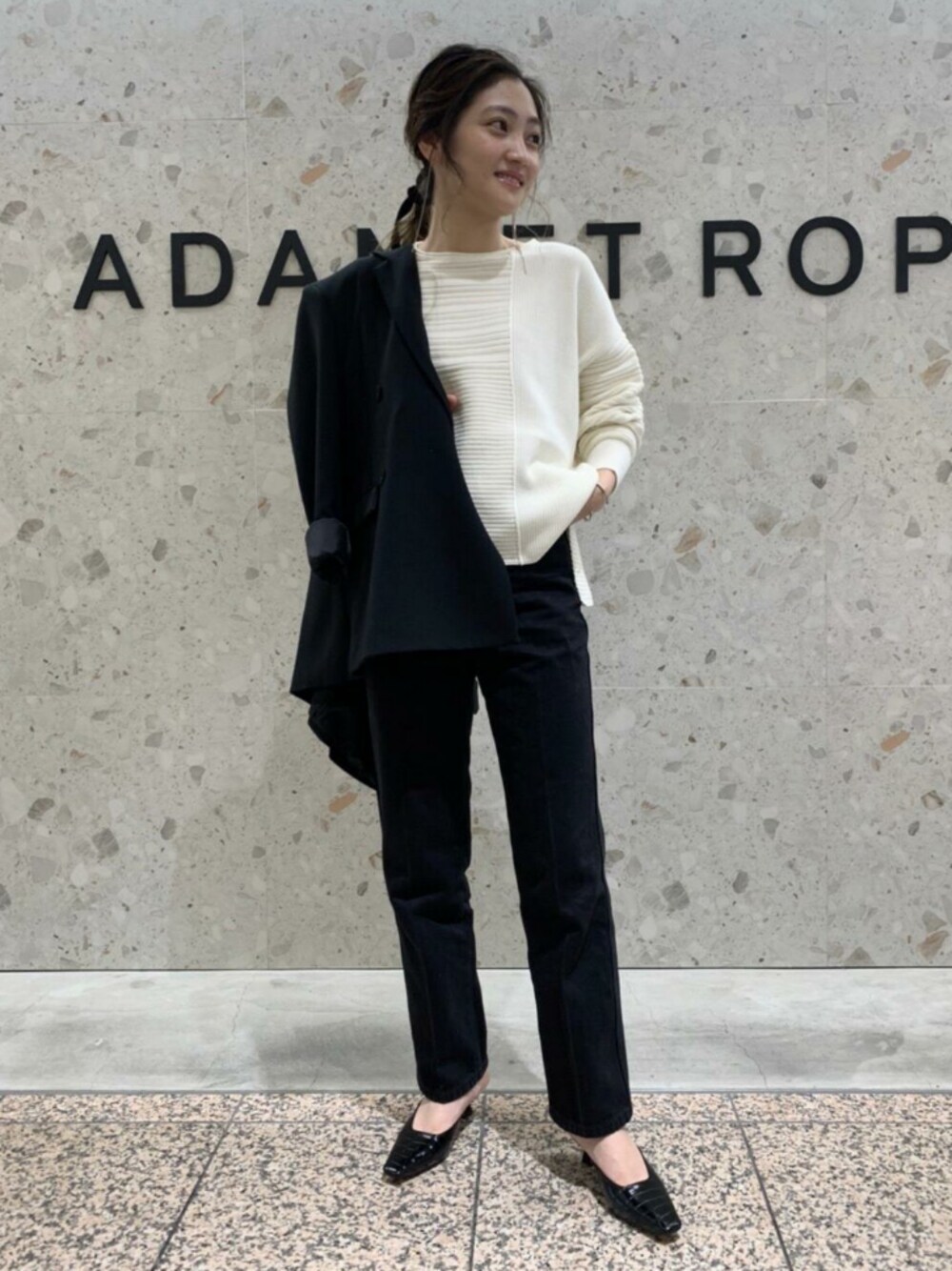 ADAM ET ROPE' STAFFのカーディガン/ボレロ「MIXパターンボリュームニットプルオーバー」を使ったコーディネート