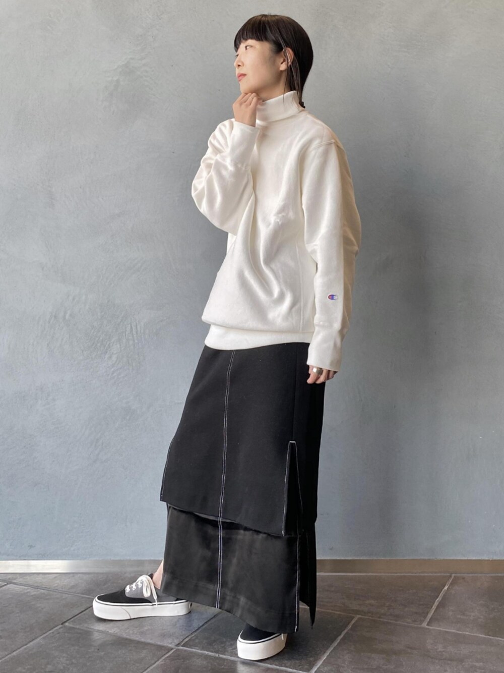 ADAM ET ROPE' STAFFのスウェット「REVERSE WEAVE HIGH NECK」を使ったコーディネート