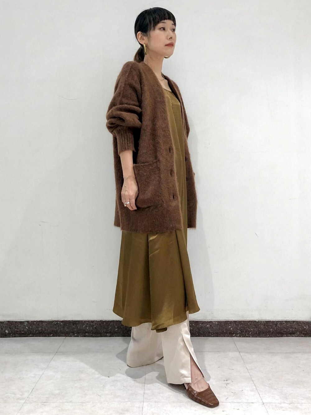 ADAM ET ROPE' STAFFのカーディガン/ボレロ「モヘアミドルカーディガン」を使ったコーディネート