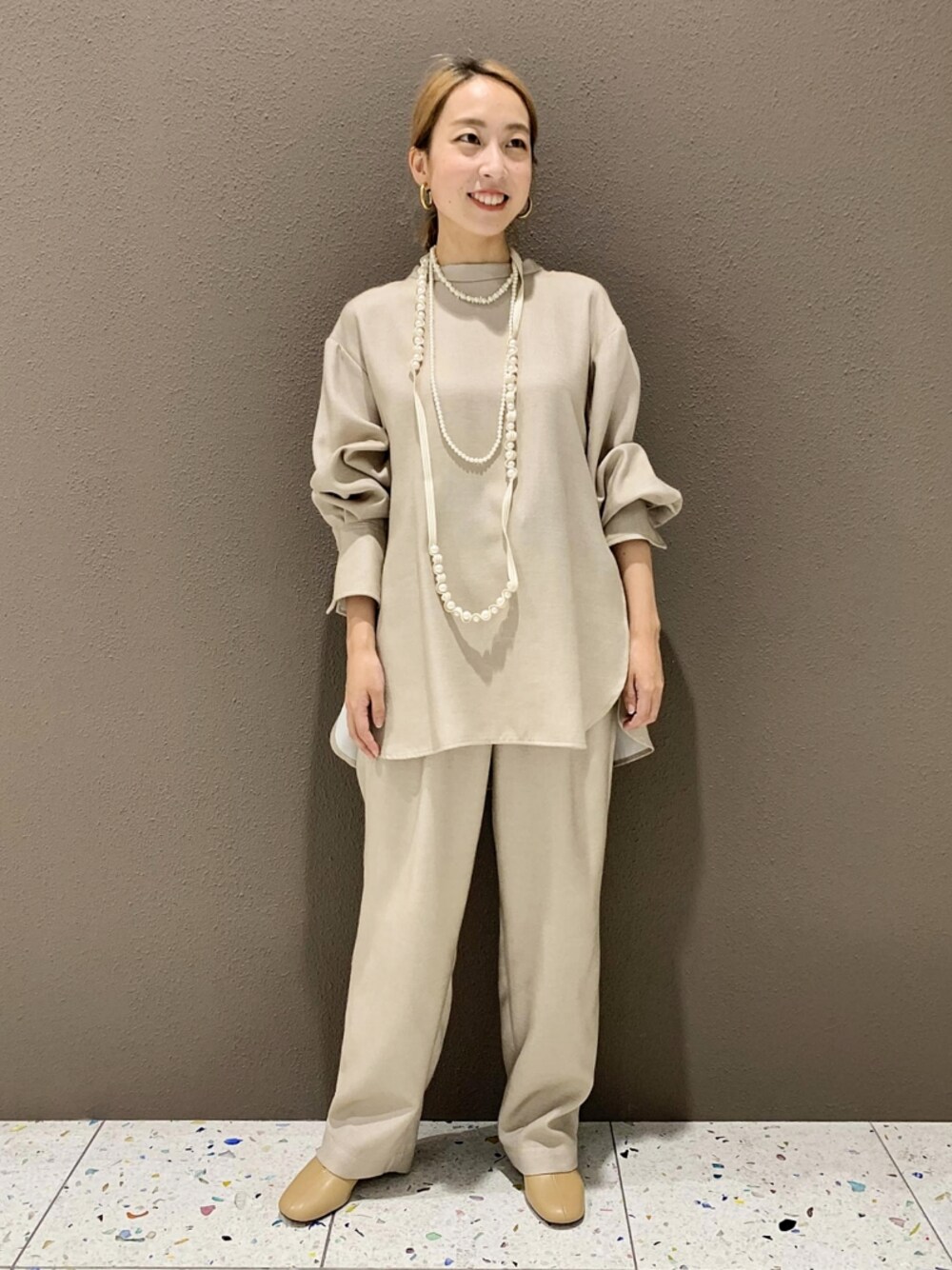 ADAM ET ROPE' STAFFのシャツ/ブラウス「【セットアップ対応】TRツイル チュニックブラウス」を使ったコーディネート