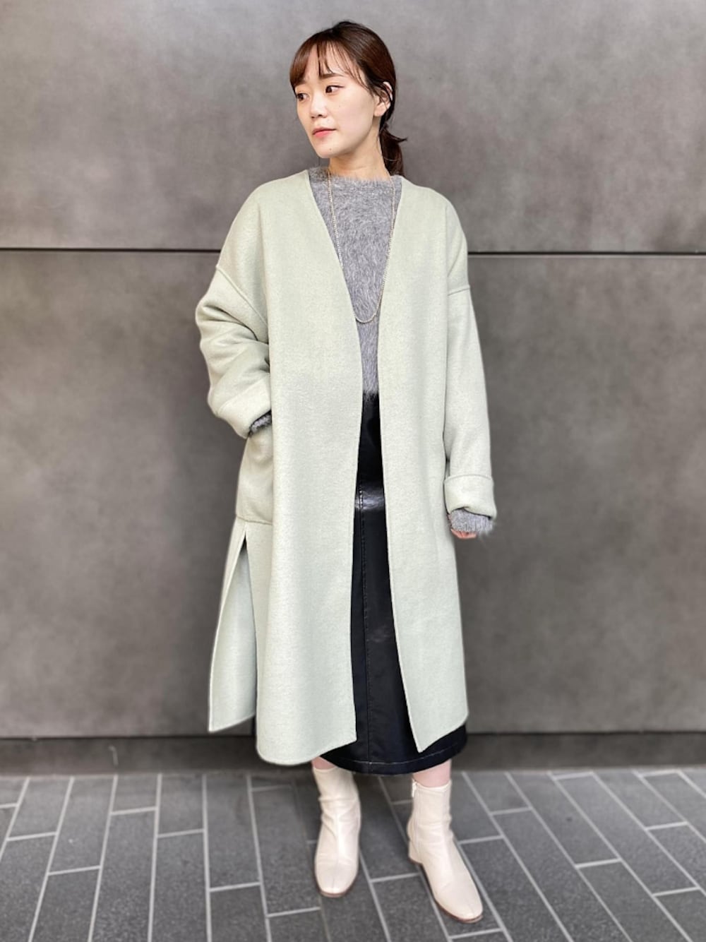ADAM ET ROPE' STAFFのその他アウター「【WEB限定】ノーカラーリバーコート」を使ったコーディネート