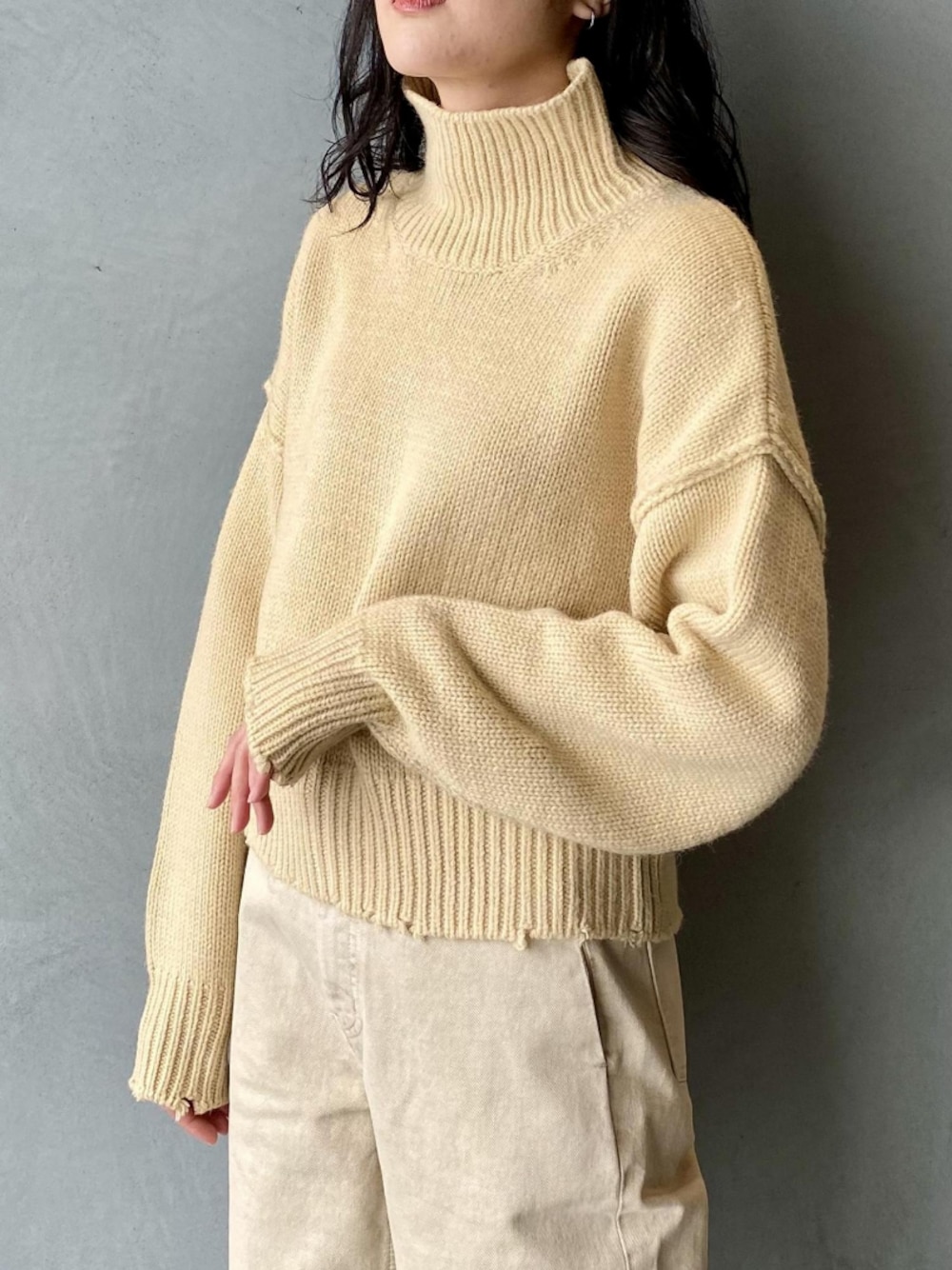 ADAM ET ROPE' STAFFのニット/セーター「【WEB限定】フリンジタートルショートプルオーバー」を使ったコーディネート
