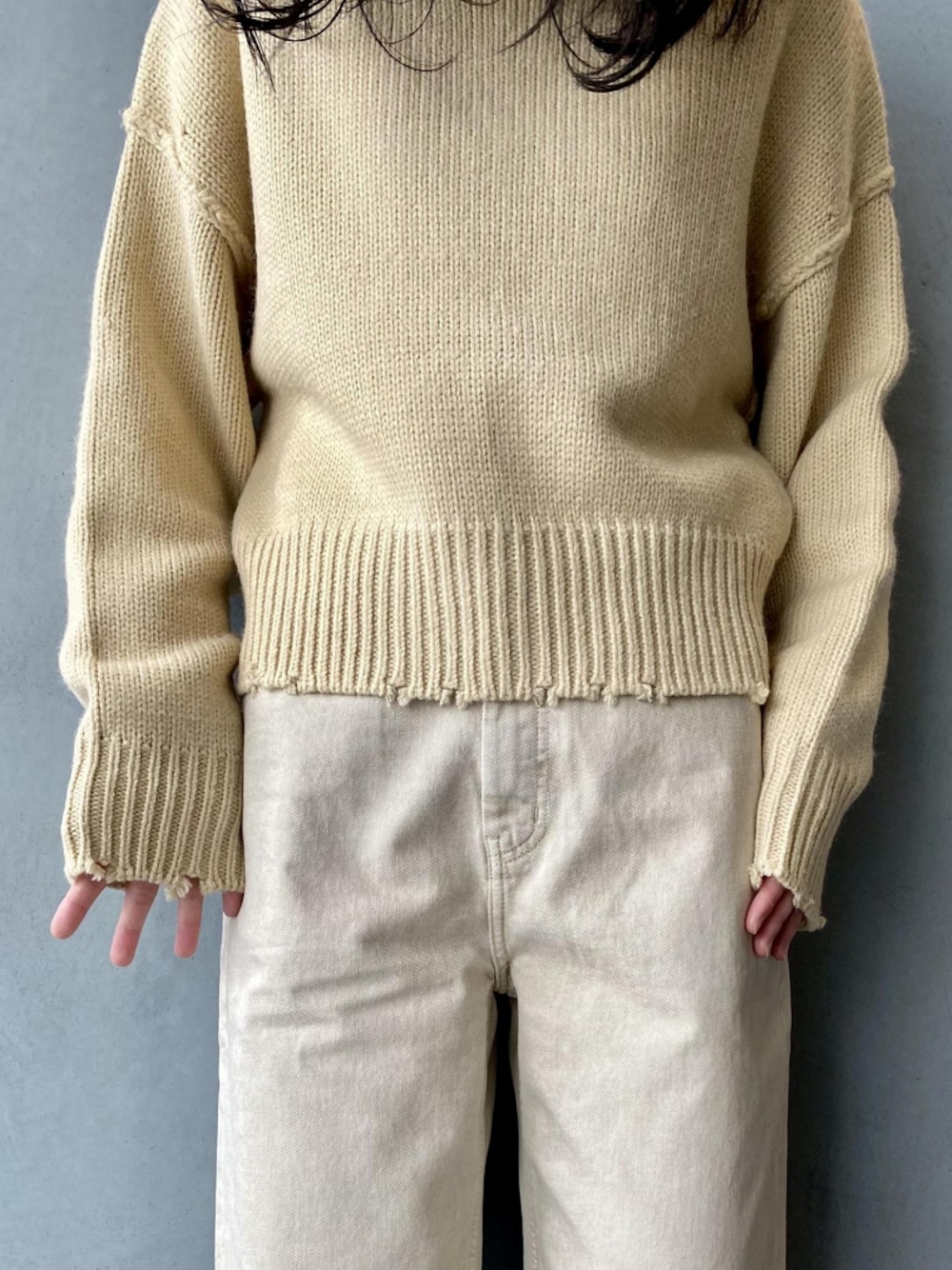 ADAM ET ROPE' STAFFのニット/セーター「【WEB限定】フリンジタートルショートプルオーバー」を使ったコーディネート