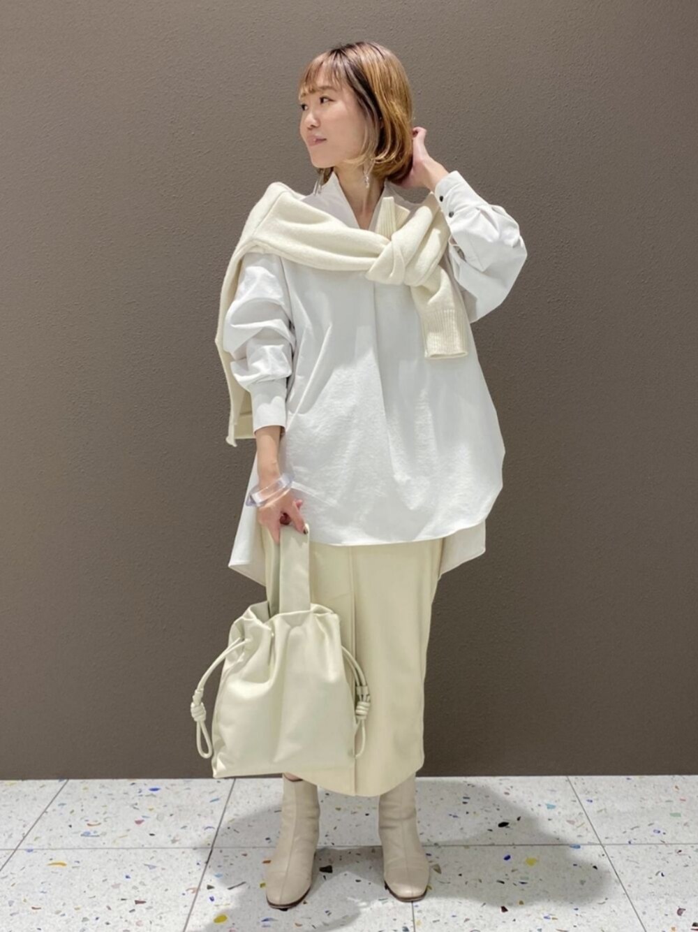 ADAM ET ROPE' STAFFのカーディガン/ボレロ「片畦スリットカーディガン」を使ったコーディネート
