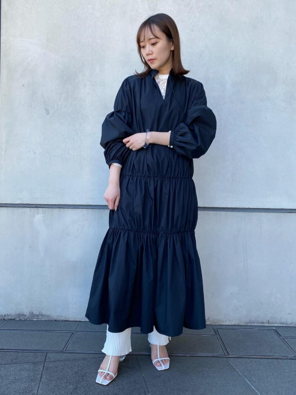 ADAM ET ROPE' STAFFのトップス「【YOUNG&OLSEN】別注レースロングスリーブカットソー」を使ったコーディネート