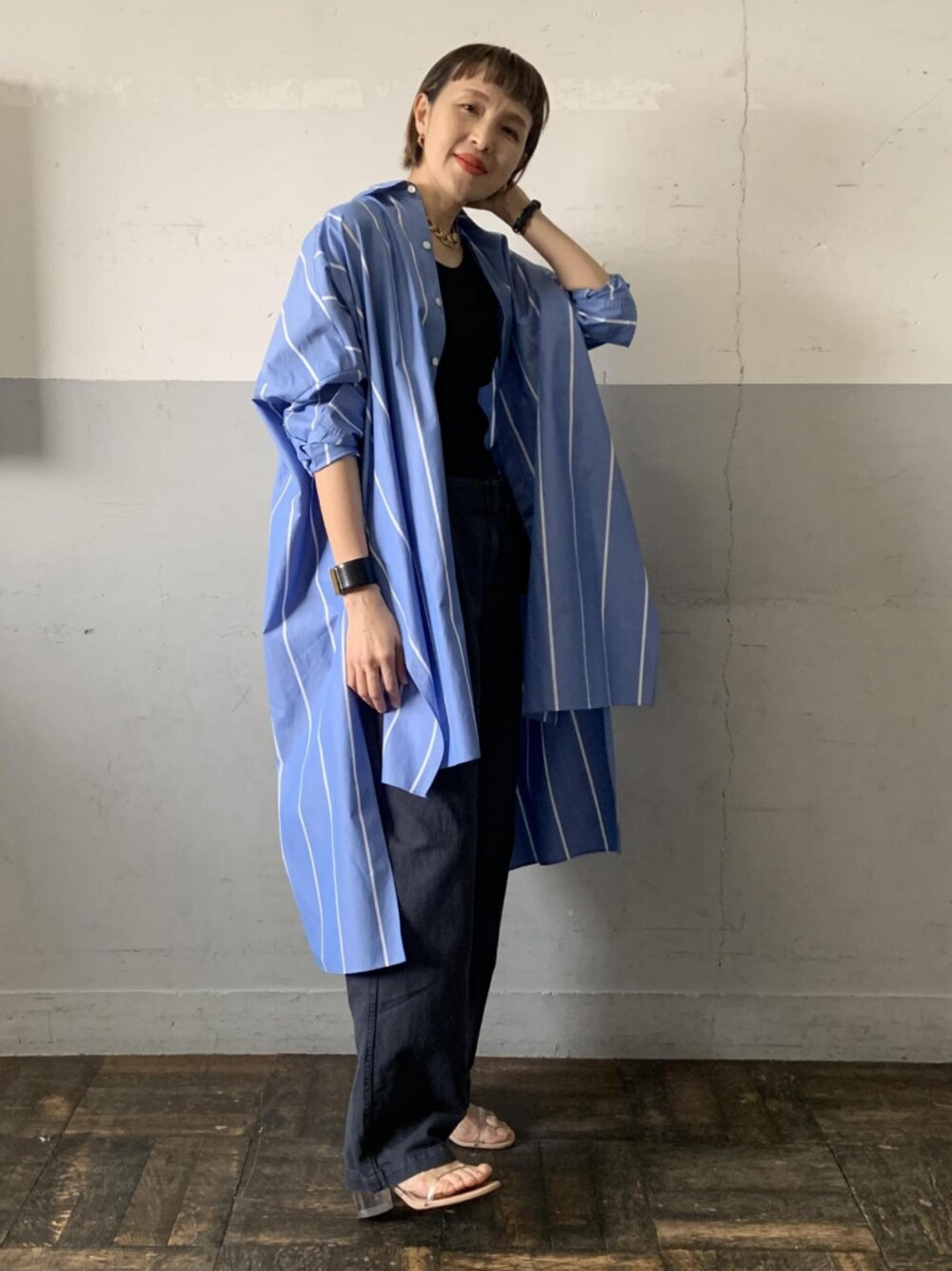 ADAM ET ROPE' STAFFのワンピース「<洗える>ボリュームシルエットシャツワンピース」を使ったコーディネート