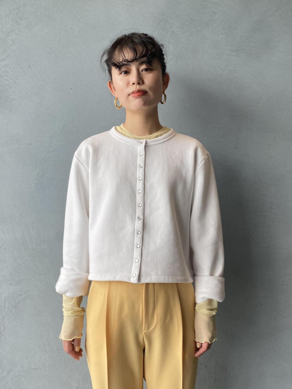 ADAM ET ROPE' STAFFのカーディガン/ボレロ「【agnes b. pour ADAM ET ROPE'】CD PRESSIONS COURT」を使ったコーディネート