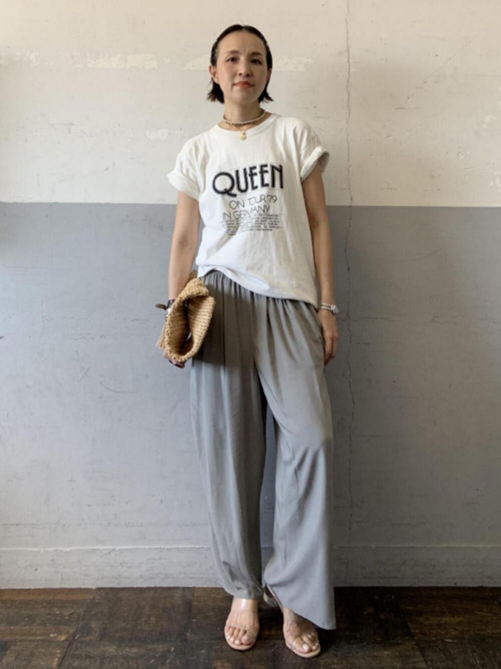 ADAM ET ROPE' STAFFのトートバッグ「タッセルラフィアトート」を使ったコーディネート