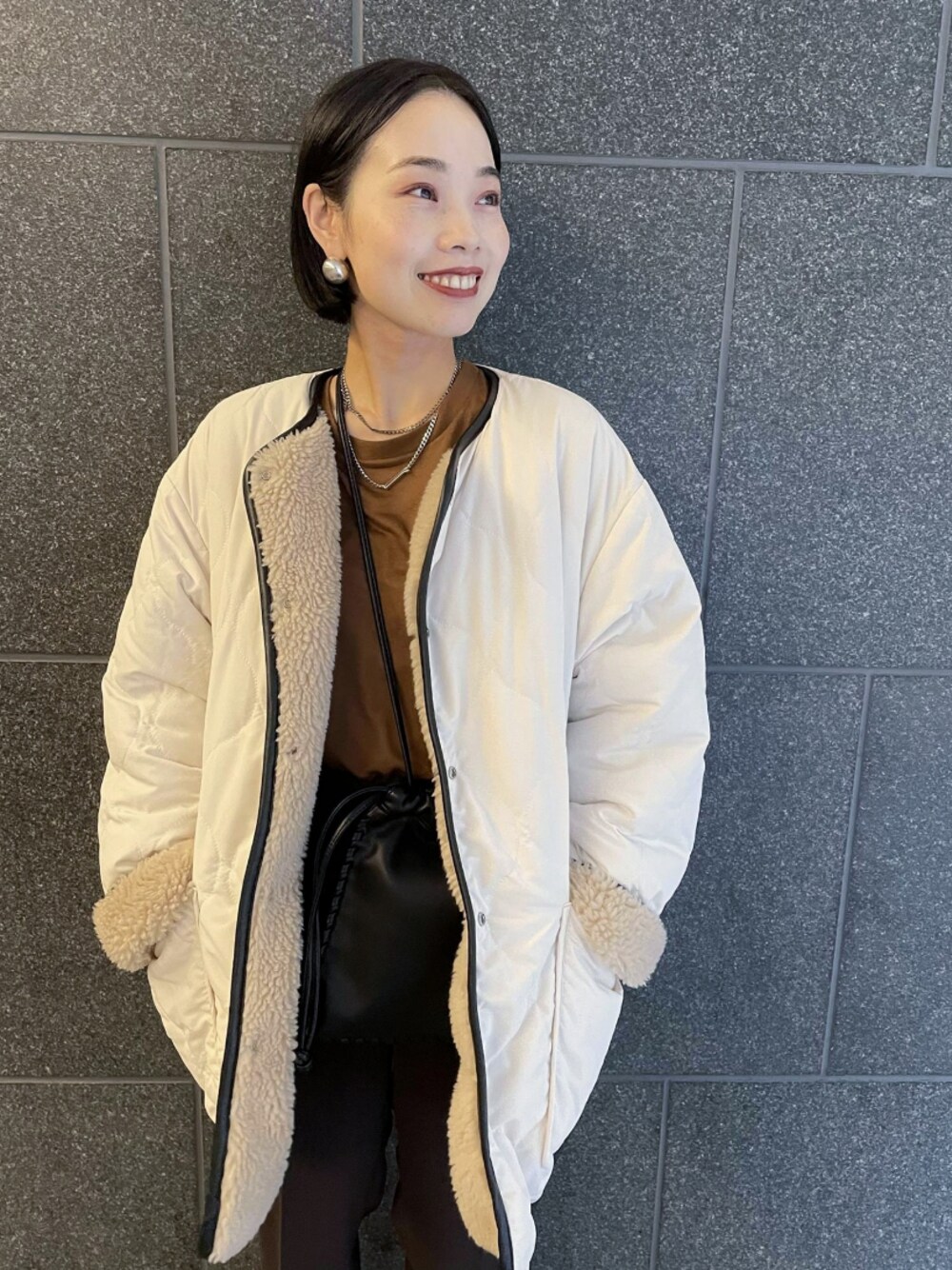 ADAM ET ROPE' STAFFのその他アウター「【WEB限定】キルトボアリバーシブルコート」を使ったコーディネート