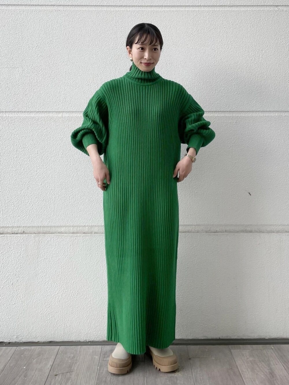 ADAM ET ROPE' STAFFのワンピース「【アウトレット店舗・WEB限定】ワイドリブロングワンピース」を使ったコーディネート