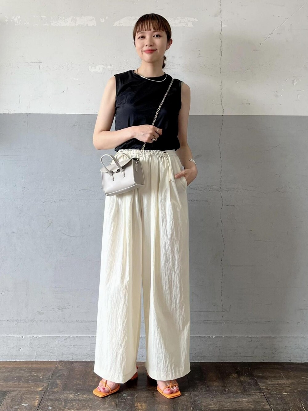 ADAM ET ROPE' STAFFのタンクトップ「ストレッチタフタノースリーブTEE」を使ったコーディネート