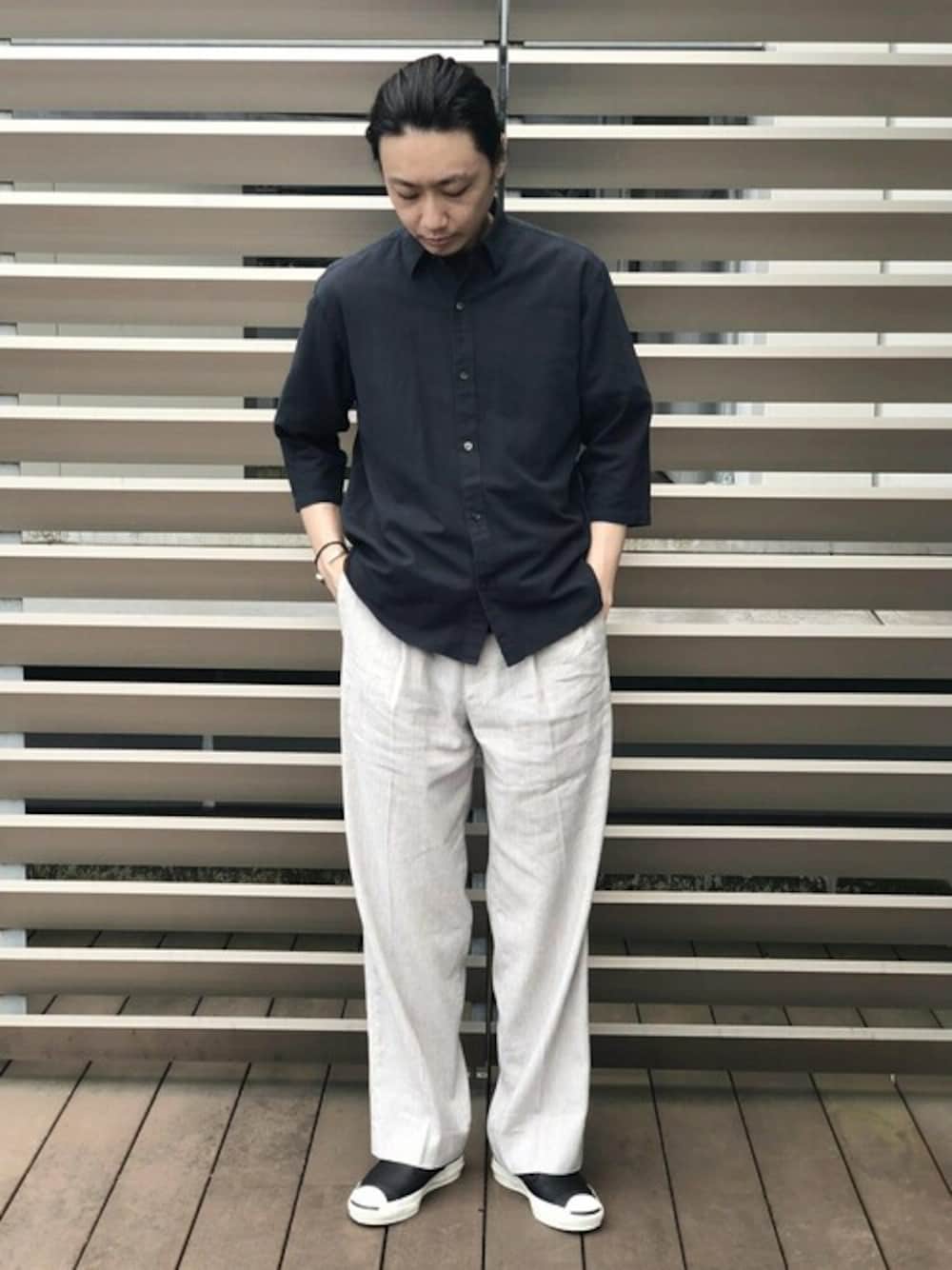 ADAM ET ROPE' HOMME STAFFのシャツ/ブラウス「〈バンブー素材〉オーバーサイズ レギュラーカラー7分袖シャツ」を使ったコーディネート