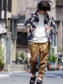GRAMICCHIとの別注ショーツを、アロハシャツと合わせた夏のスタイリングです。 アロハシャツには、やはり足元はサンダルがおすすめ◎ STAFF:172cm