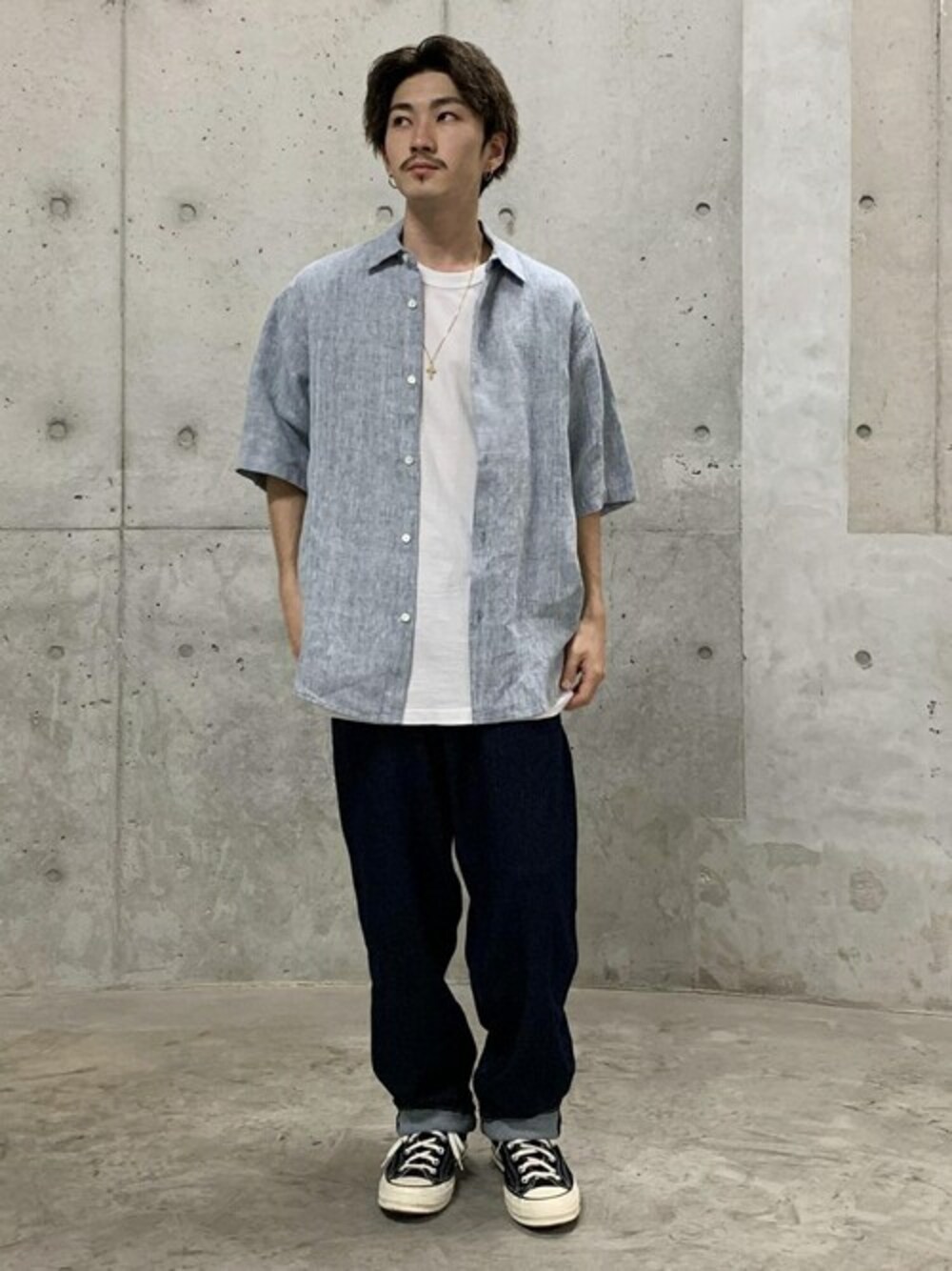 ゆったりとしたシルエットが魅力の半袖シャツに、LEEとの別注デニムパンツを合わせました。 シャツは、上質なベルギーリネンを使用しているので、経年変化も楽しめる、特別なアイテムです。 STAFF:165cm