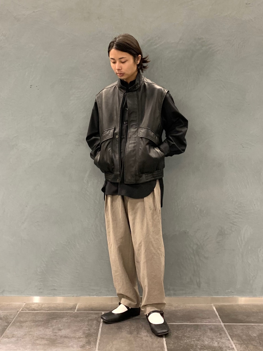 ADAM ET ROPE' HOMME STAFFのその他アウター「ラムレザー ベスト/サスティナブル」を使ったコーディネート