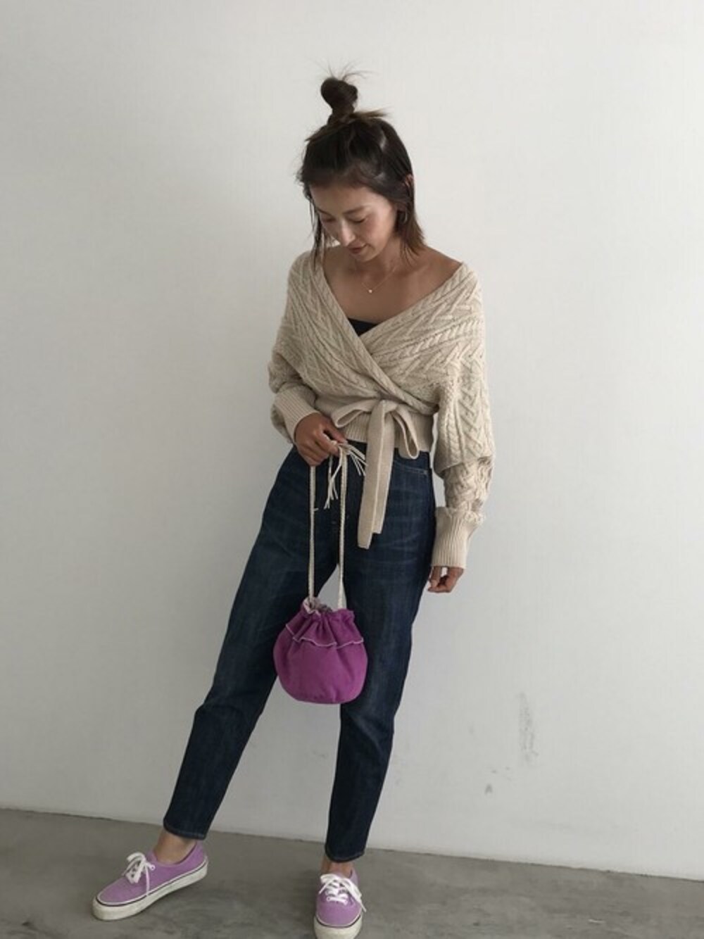ADIRAのデニムパンツ「back race-up high waist denim」を使ったコーディネート