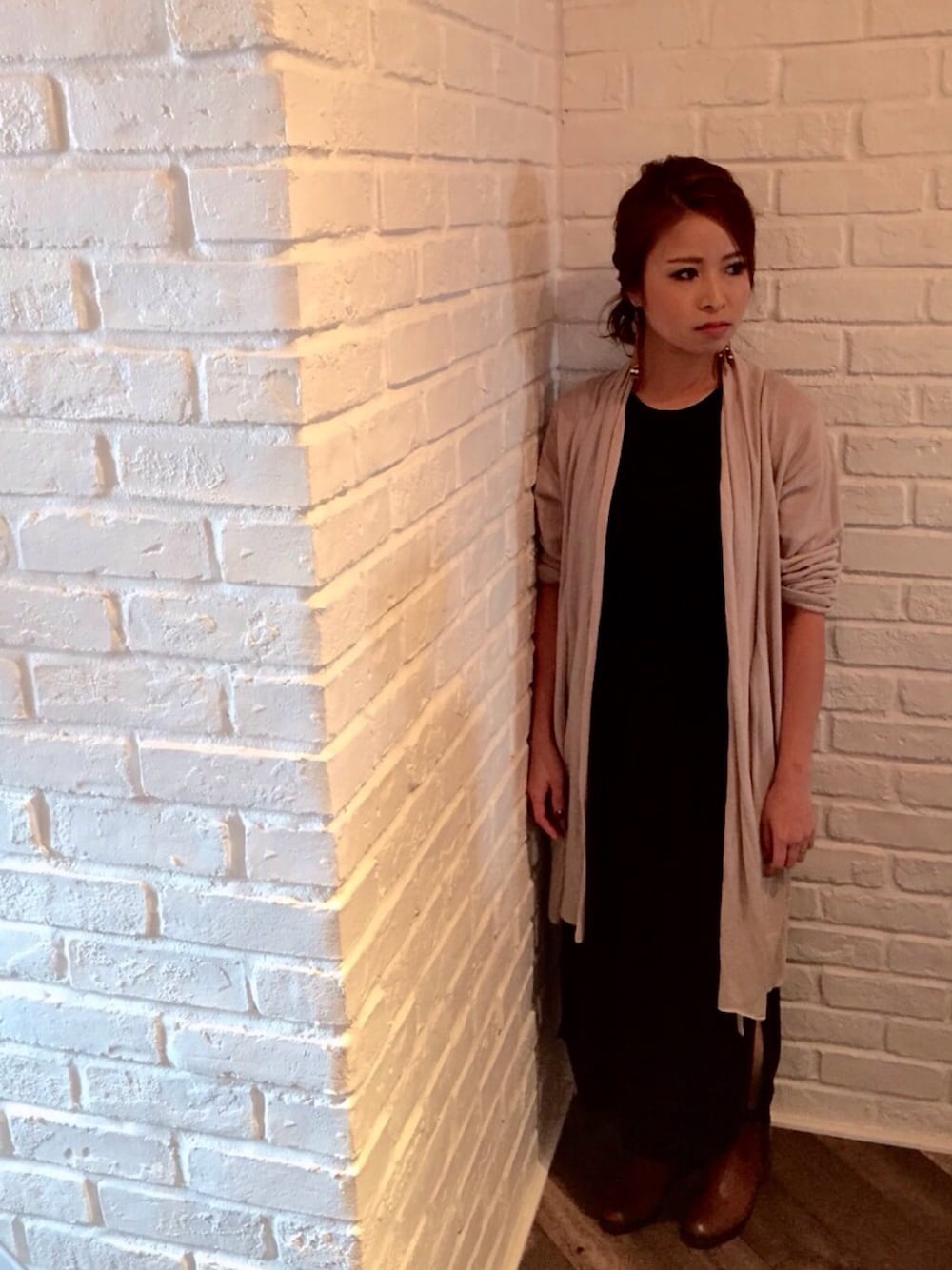 ブーツとピアスをブラウンで統一させ、秋っぽさを出してみました^ ^