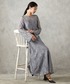 大きな花柄のレースが大人っぽいドレス。 袖口に向かって広がるベルスリーブがポイント。 脚がしっかり隠れるマキシ丈がエレガントです。