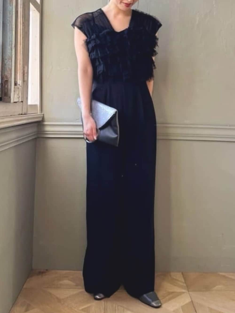 AIMER(AIMER)のパンツドレス「【WEB限定】チュールフリルベスト×キャミソールオールインワン セットパーティードレス 結婚式 お呼ばれ ドレス 20代 30代 40代」を使ったコーディネート