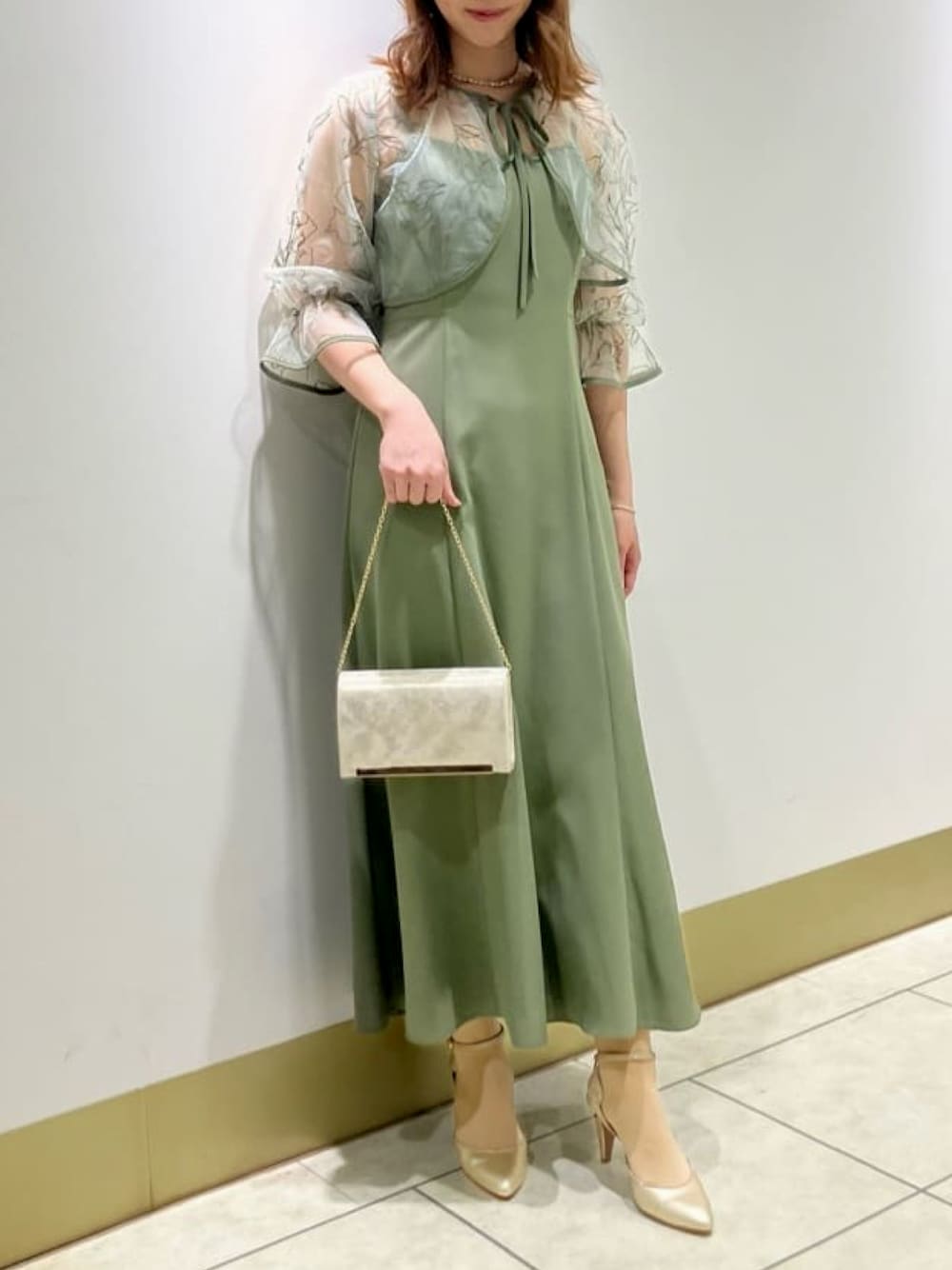 AIMER(AIMER)のドレス「2WAY線画フラワー刺繍ボレロレイヤードパーティードレス 結婚式 お呼ばれ ドレス 20代 30代 40代」を使ったコーディネート
