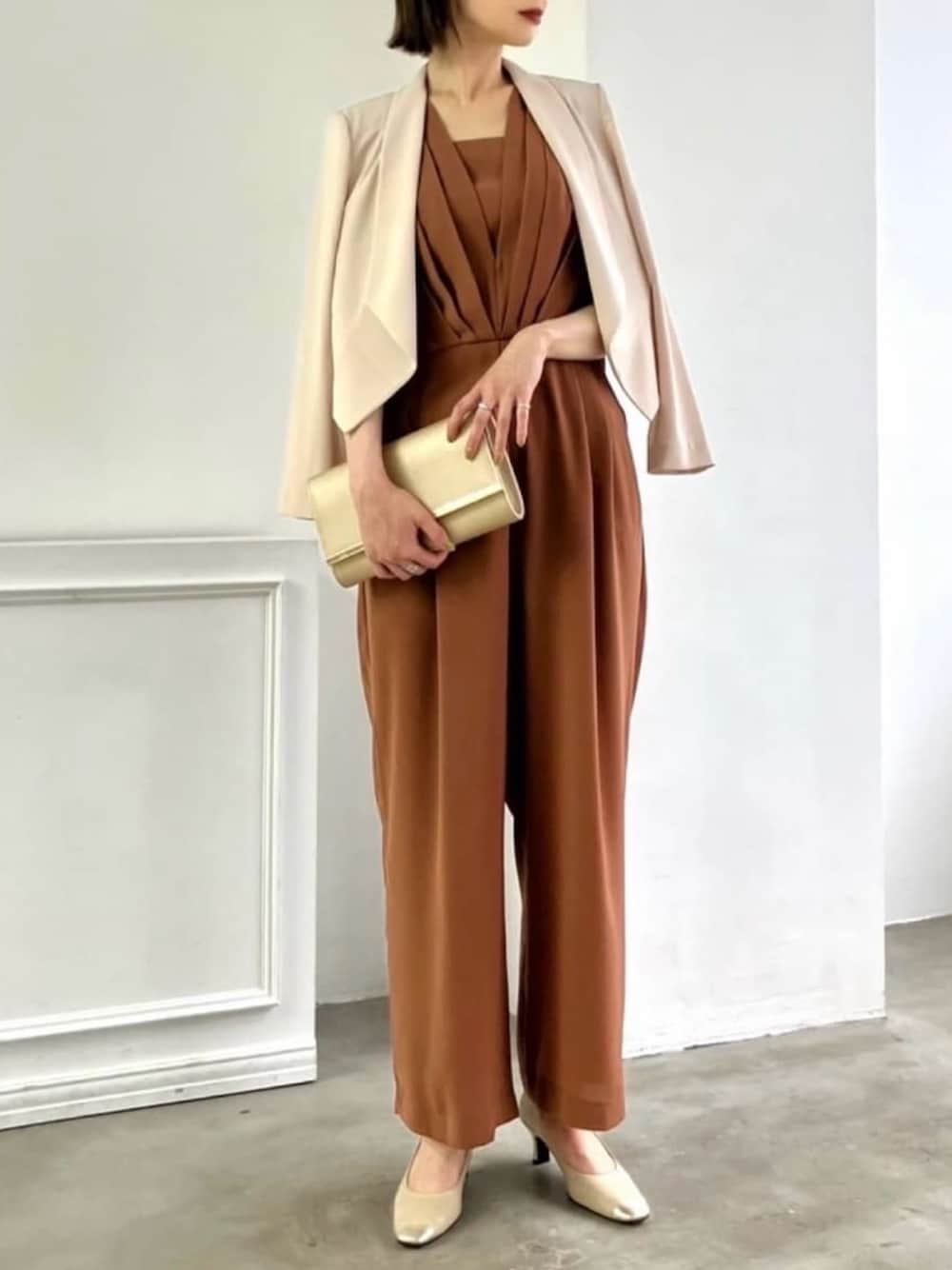 AIMER(AIMER)のパンツドレス「ストレートパンツオールインワンパーティードレス 結婚式 お呼ばれ ドレス 20代 30代 40代」を使ったコーディネート