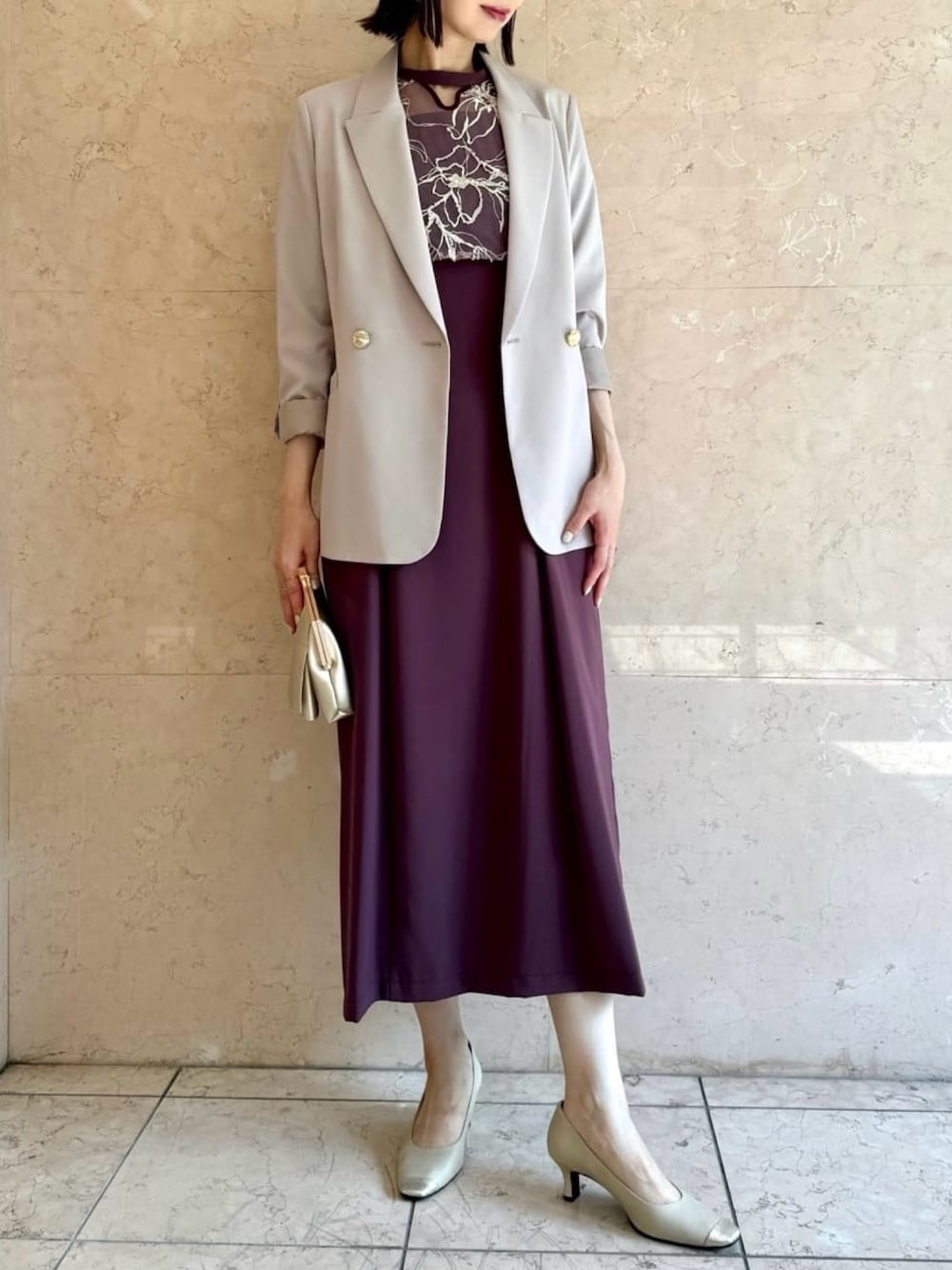 AIMER(AIMER)のドレス「フラワーモール刺繍キーネックブラウス×Iラインキャミソールワンピース 2点セットパーティードレス 結婚式 お呼ばれ ドレス 20代 30代」を使ったコーディネート