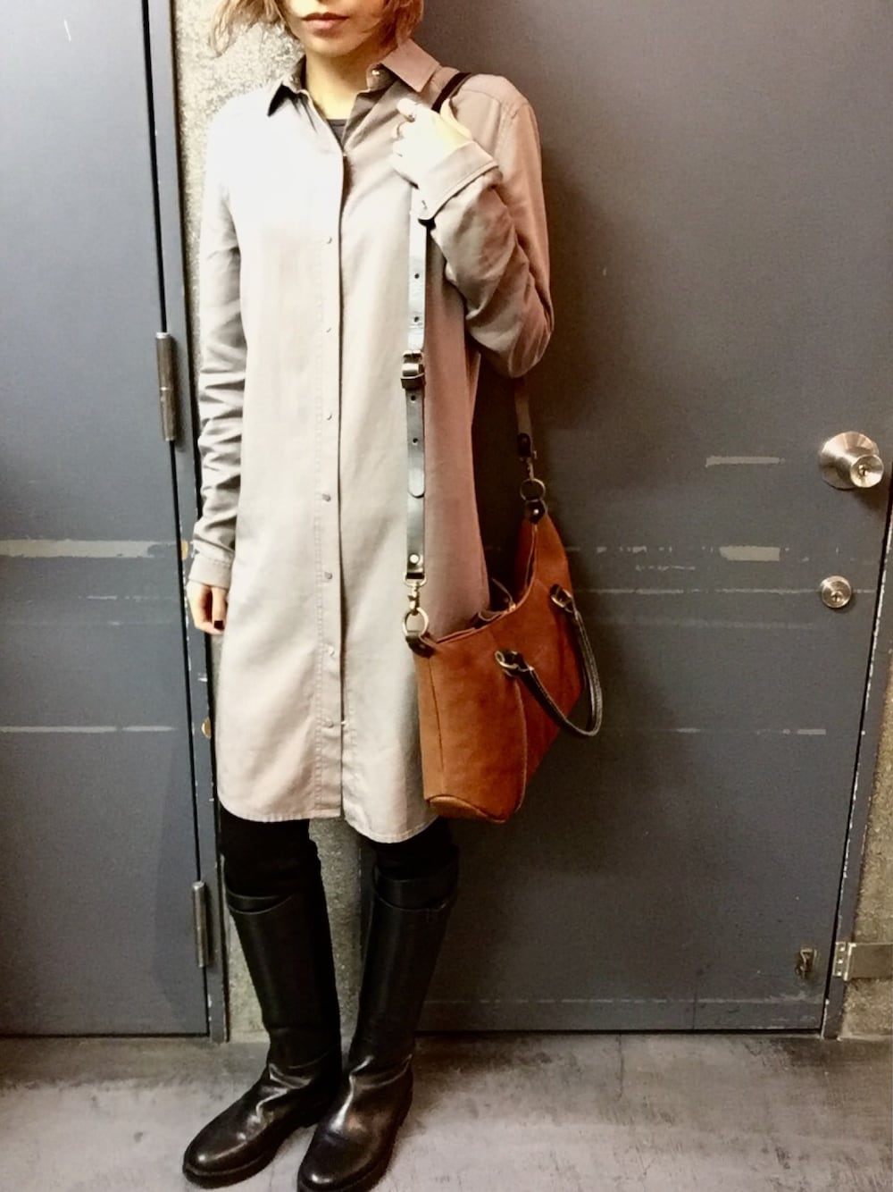 Ain Sophのショルダーバッグ「ラクダ革ショルダーバック:ASE1317-CMS (Color:Camel,DarkBrown)」を使ったコーディネート