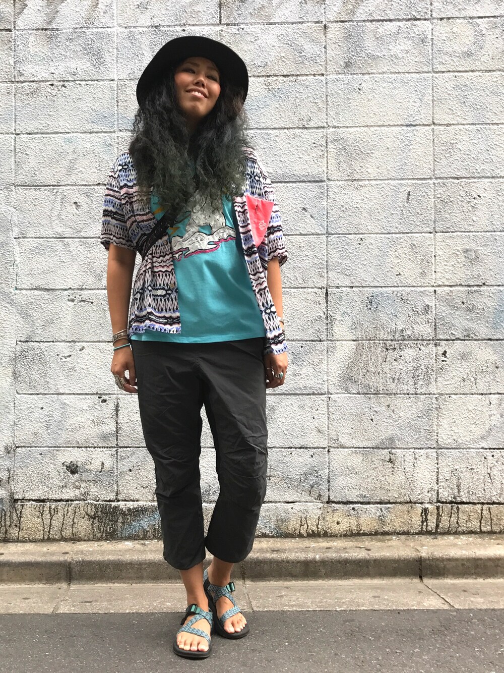 モジャ子のハット「Rapper Hat ワイドブリム 刺繍入りハット」を使ったコーディネート