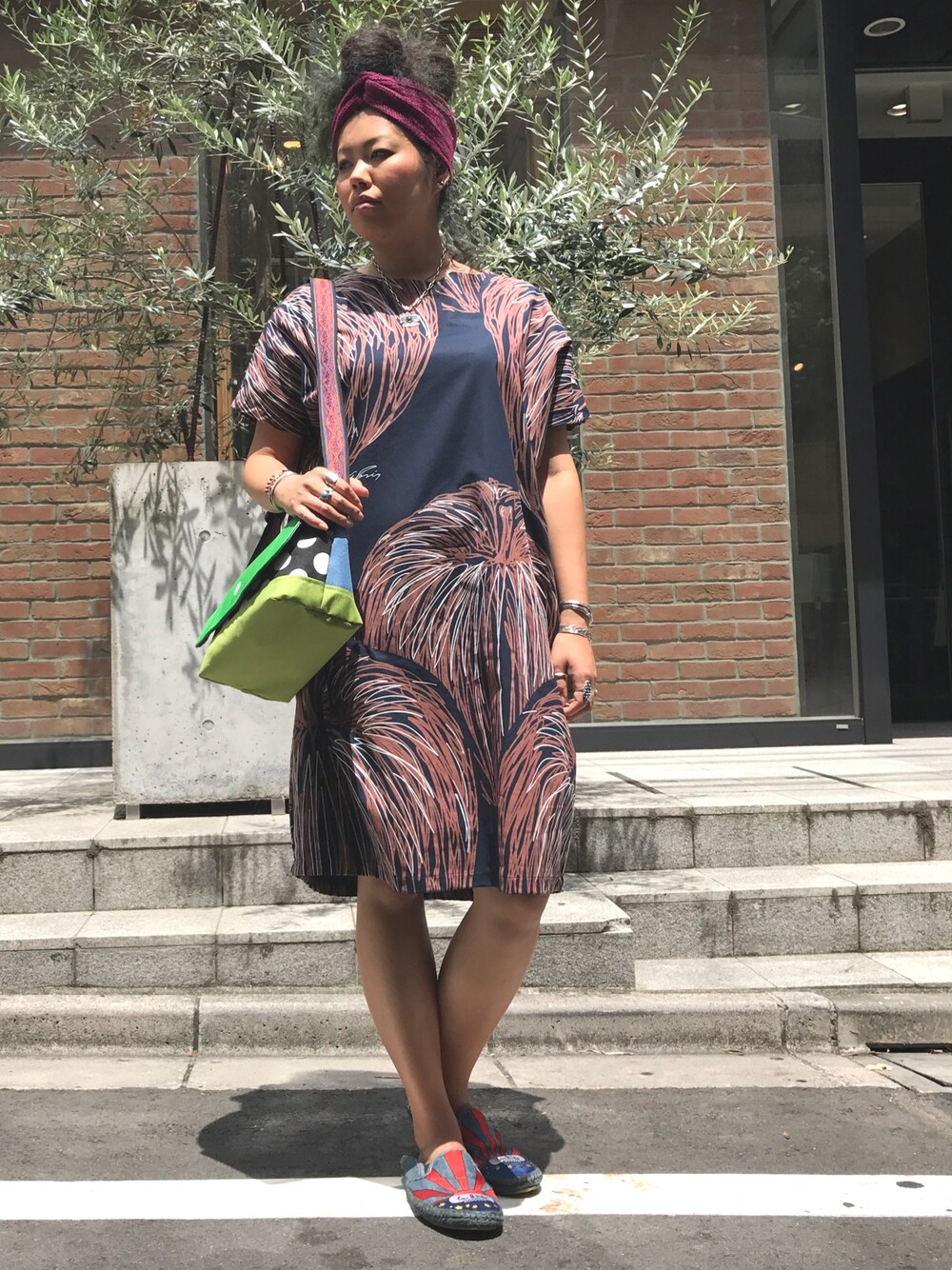 こんにちはー‼️ miracoのワンピでエスニックコーデしてみましたー🌵 リンゴモチーフ可愛い〜🍎