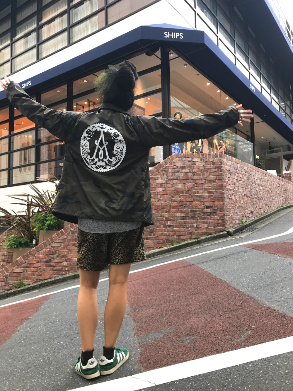 こんにちはー🌵❤️ ちょっと寒すぎーー😩💦 台風去ってくれーー‼️ ってことで新作のコーチジャケット羽織ってみましたー⭐️⭐️⭐️⭐️背中のエンブレムかっこよ❤️