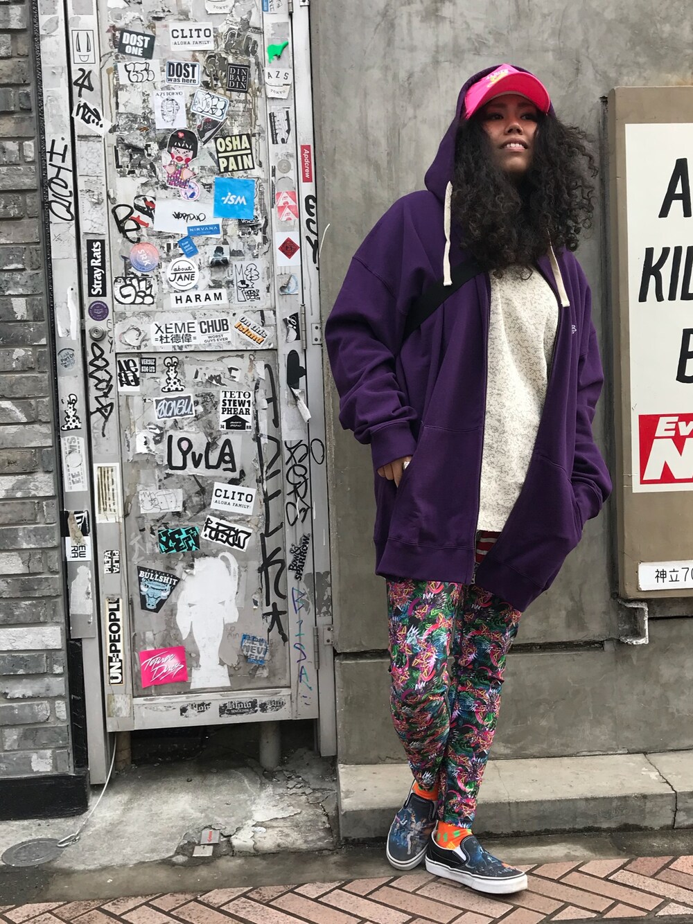 こんにちはー‼️ スーパーオーバーサイズのパーカーにショーツとレギンスでゆるゆるスポーティにしてみました🌈 板系乗れたら良さそうっすねー✨あたし乗れないけど(笑)