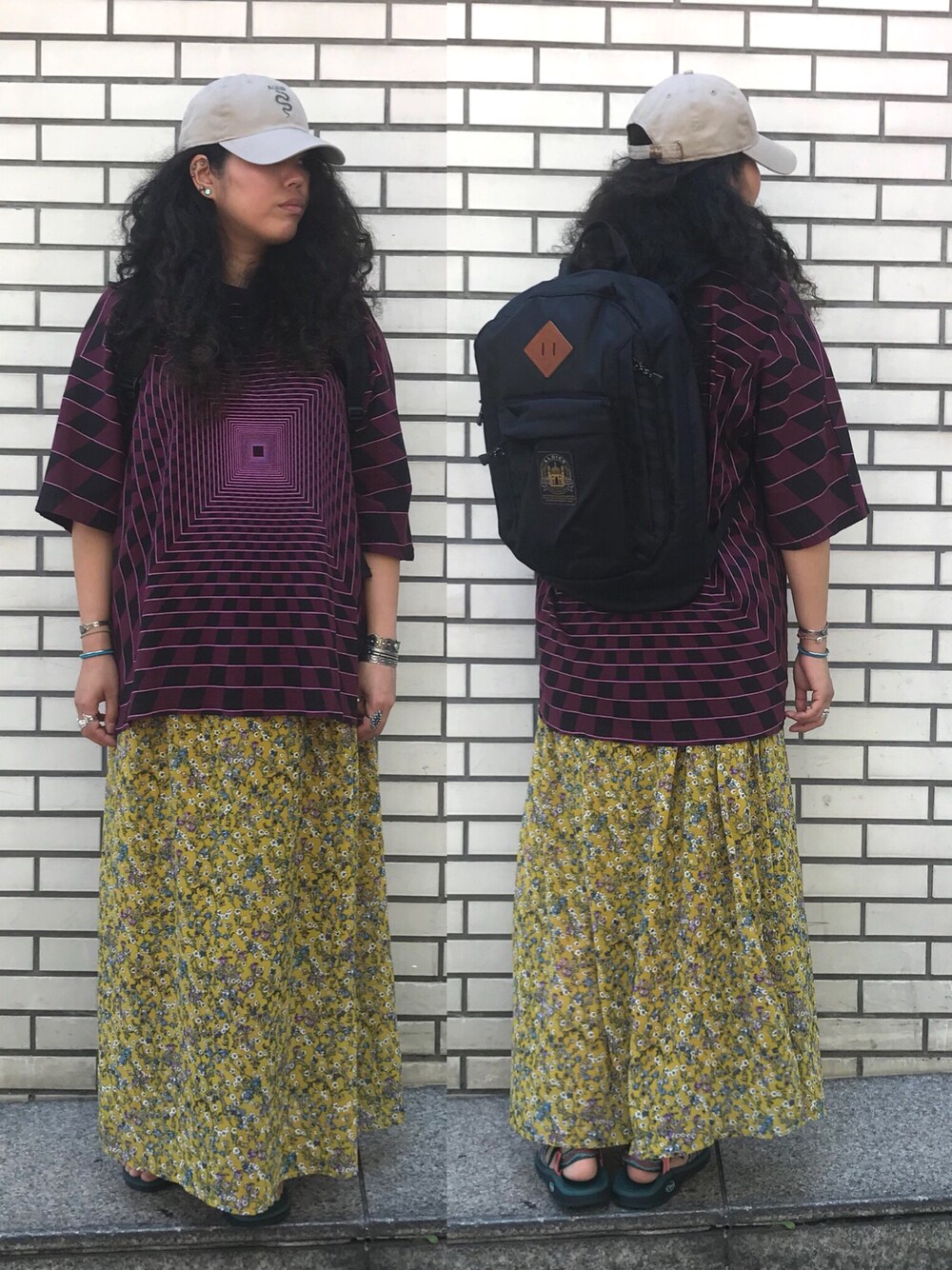 こんにちはー❤️ 新作リュックは大容量‼️‼️‼️ ビッグTとスカートにあえてリュックはたまらんっすーー✨