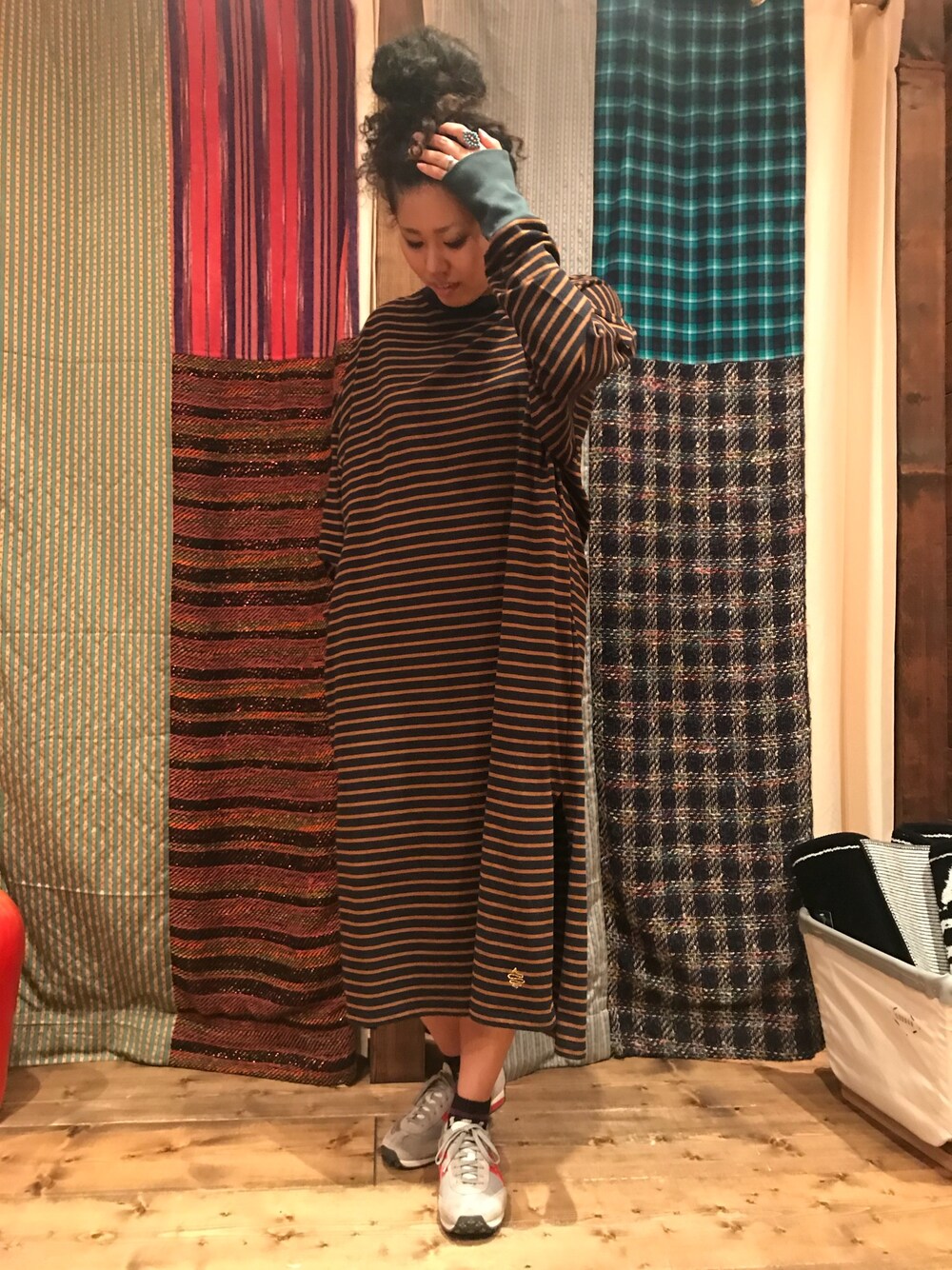 秋にぴったりのボーダーワンピース‼️ かなりゆったりなシルエットだから超楽チン🙌 がっつり入ったシルエットがポイントっすね🌈