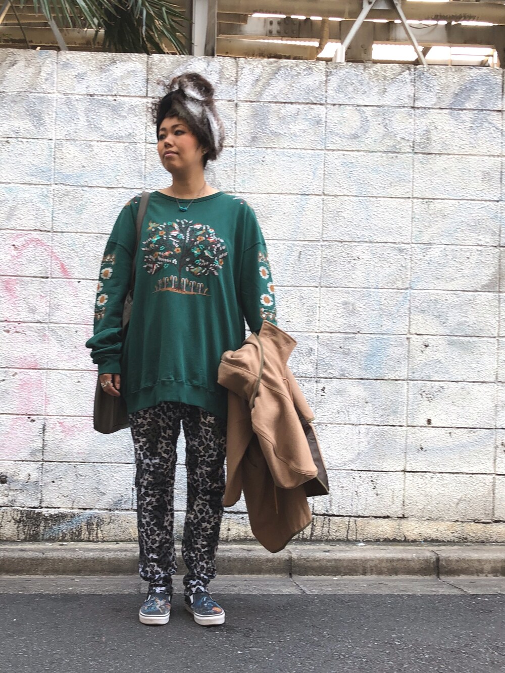 こんにちはー🙌 スーパー減肥茶飲んでお腹ぶっ壊れです😨💦 刺繍ががっつり入ったビッグスウェットにアニマルパンツ合わせてみましたー🙌 モコモコしたパンツは超暖かい❤️