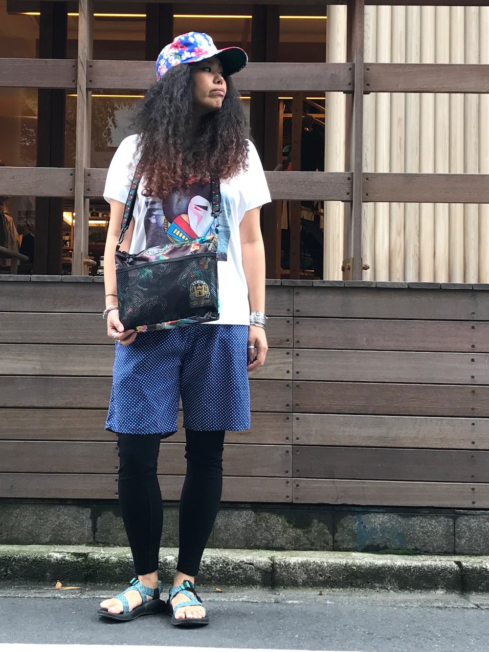 モジャ子のキャップ「Extremly Cap 総柄 スナップバック キャップ」を使ったコーディネート