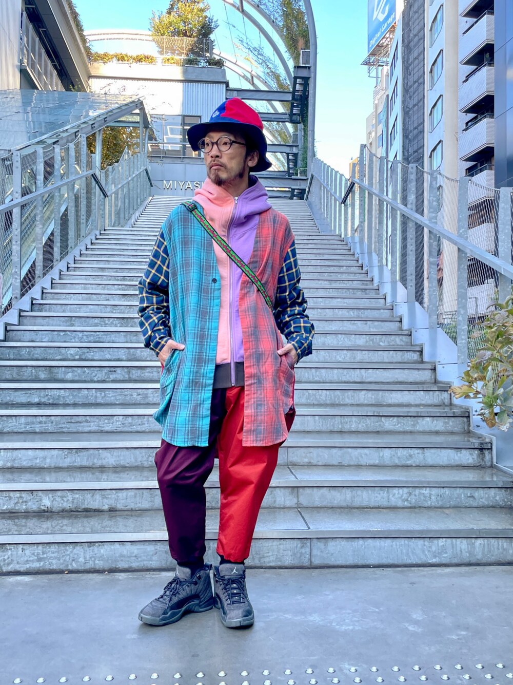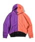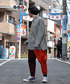 左右カラーが違うアイテムでバイカラースタイル。