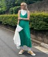 @__yukiarai モデル身長:159cm キャミワンピースをスカート風に♡ オーバーサイズのTシャツを重ねて着れば まるでスカートを履いているようなコーディネートに変身! 通気性のあるバケットハットはこの夏欠かせないアイテムに◎