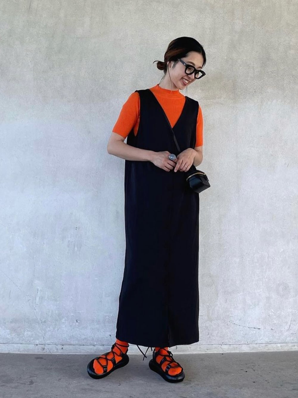 @___karikarikari___ 身長:168cm AMAILのトップスとサンダルを可愛く 着回してくれてます♡ トップスのオレンジとソックス合わせてがとっても可愛い〜!!