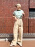@aiinoshima 身長:167cm アウトドアな気分でカジュアルコーデ♡ ライントップスとワイドシルエットのパンツでこなれたコーディネートに◎ ワイドパンツの裾は太めに折り返しても可愛いよ〜