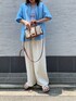 ブルーシャツで一気に爽快感up♡ 腕を出したくない方に夏お勧めしたい軽羽織◎ @amail_official Peace candy shirt ¥14,300- @mihomikata 身長:158cm