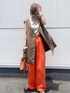 カラーパンツにベストを合わせたレイヤードコーデは一気に大人カジュアルに♡ @amail_official Bulky kai pants ¥13,200- @ka_lly 身長:161cm
