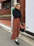 シンプルなタートルニット♡ 袖元のフィンガーホールが今季のトレンド◎ @amail_official Fashionable grape knit ¥6,050- Pleats check fitfrea skirt ¥11,000- @aiinoshima 身長:167cm