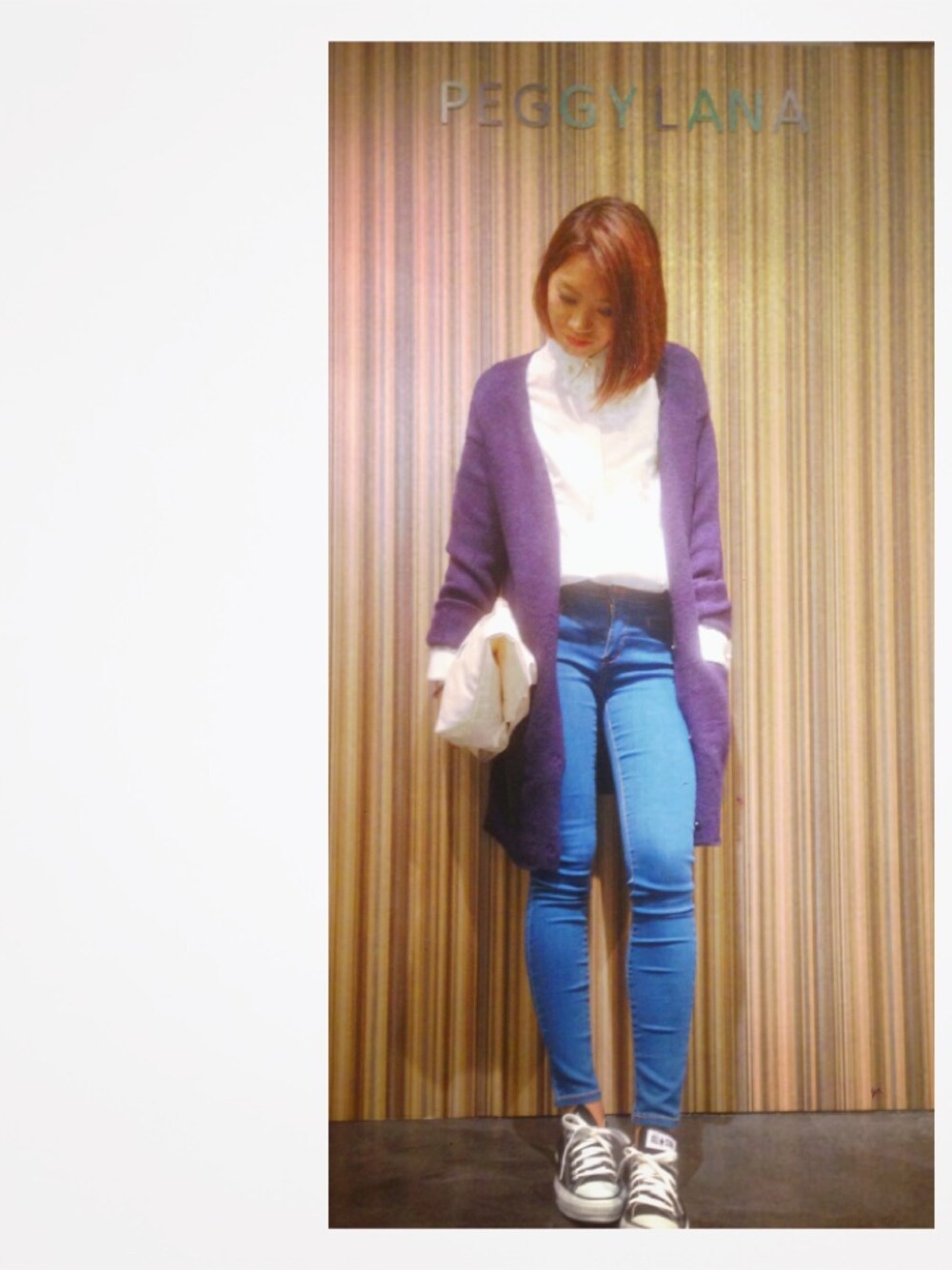 入荷したばかりの、カーディガン。 ふわふわで着心地の良さが最高! 冬はレザーやGジャン、パーカーを重ねても使えそう! あえてキレイ目なパールボタンダウンシャツを合わせて、 小物でカジュアルに。 コンバースはハイカット派だったけど、 ローカットにハマりそう♡ ALL ITEMS >> PEGGY LANA