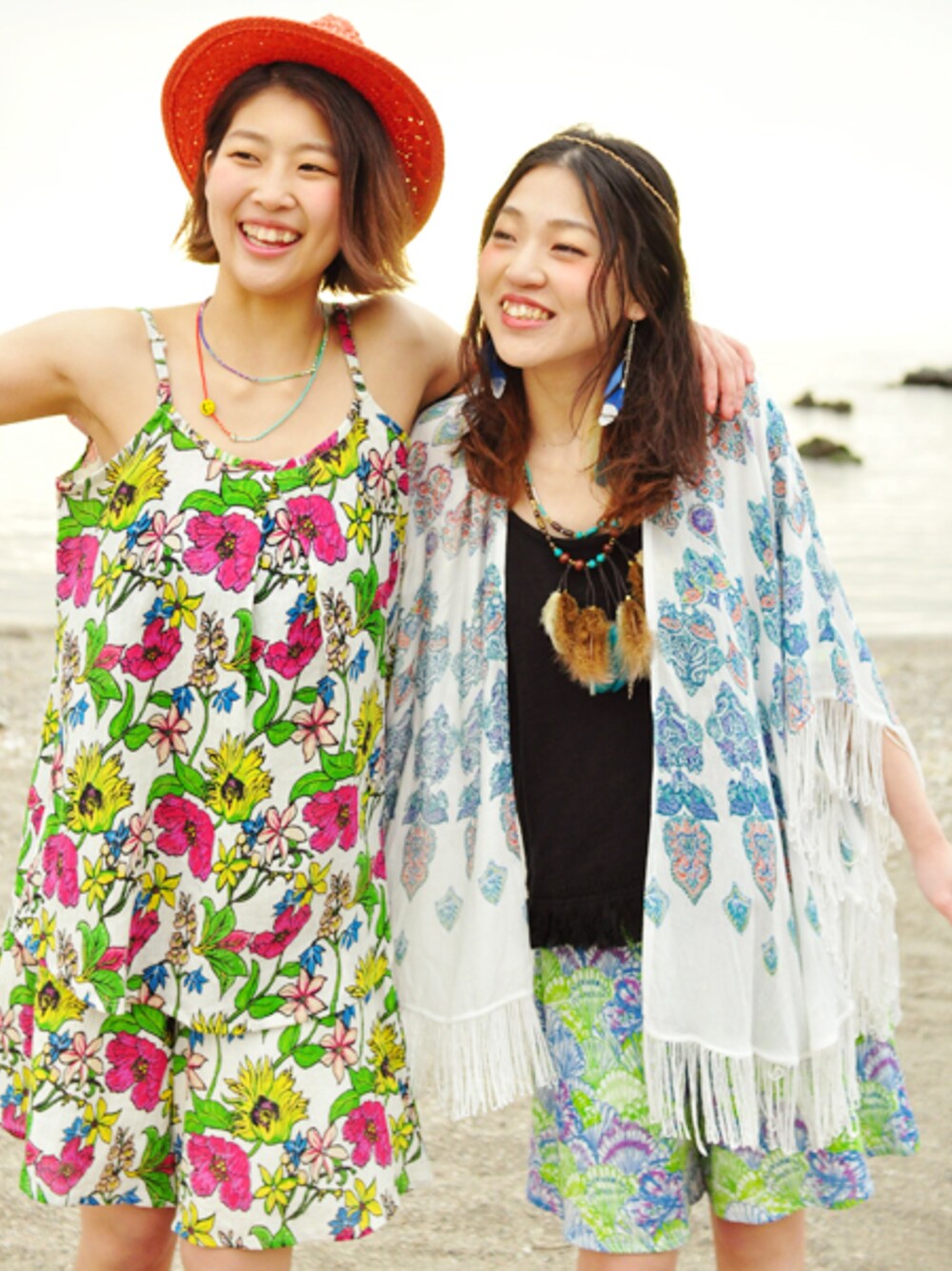 夏フェスには! 動きやすいショートパンツと カラフルなエスニックスタイルがおすすめ♪* フェザーアクセでボヘミアン&ヒッピースタイルに◎