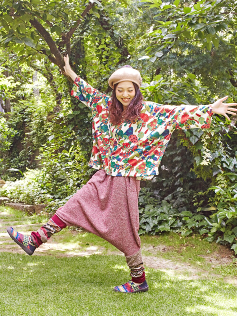 \\ 秋も 冬も アクティブに !! // 動きやすいビッグシルエットのカットソートップス★ カラフルでサイケデリックなキノコ柄♪ ボトムは温かなアクリル素材の変形パンツ。 個性的で元気なコーディネートです☆★